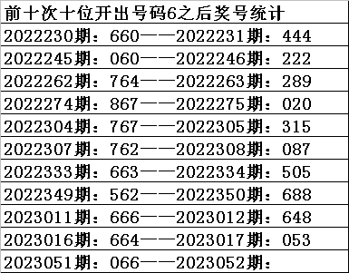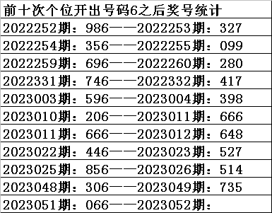 一、上期开奖:福利彩票3D第2023051期奖号为066。奇偶比为0:3,大小比为:2:1,奖号和值为12,奖号跨度为6。