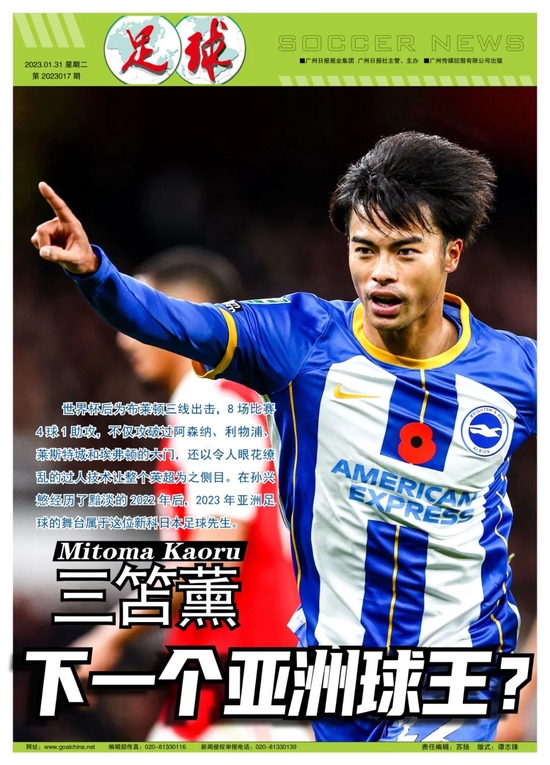 记者寒冰报谈 谁是亚洲最受瞩方针球星?卡塔尔寰球杯时,当然是孙兴慜,但活着界杯后,这个问题的谜底更应该是在布莱顿大放异彩的日本边锋三笘薰。寰球杯后为布莱顿三线出击,8场比赛4球1助攻,不仅攻破过阿森纳、利物浦、莱斯特城和埃弗顿的大门,还以令东谈主眼花头晕的过东谈主本领让悉数英超为之消灭。在孙兴慜经验了黯淡的2022年后,2023年亚洲足球的舞台属于新科日本足球先生。