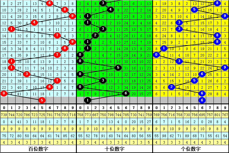 百位上期出现:冷号0,该位集聚十期以热号出现较多,以冷号出现较少,现在该位遗漏15期以上的冷号有2个:2、5,本期珍惜该位冷号冉冉解冻,关爱冷号5。